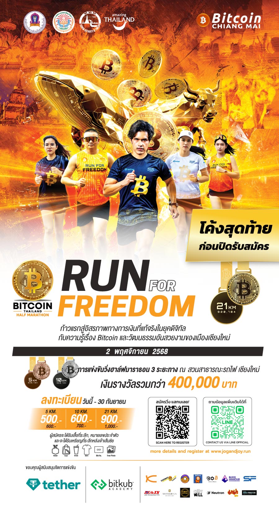 ได้กำหนดจัดการแข่งขันวิ่ง Bitcoin Thailand Half Marathon 2025 ขึ้น