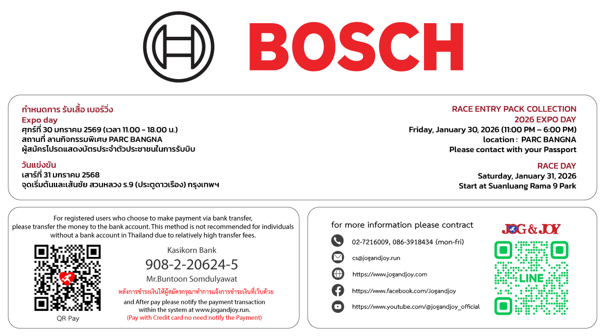 สามารถรับ Race Pack ได้ที่ เคาน์เตอร์เฉพาะกิจ JOG&JOY ลานกิจกรรม PARC BANGNA