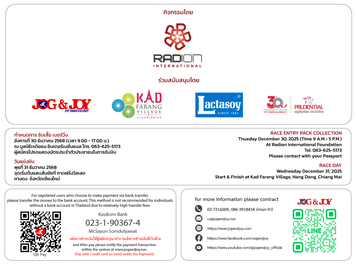 ค่าสมัคร 450 บาท มีเสื้อที่ระลึก