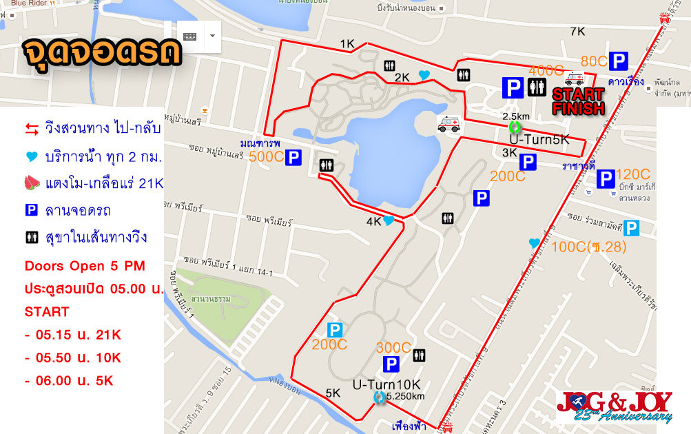 * มีเจ้าหน้าที่อาสาสมัครและทีมแพทย์ฉุกเฉิน ดูแลความปลอดภัยตลอดเส้นทาง